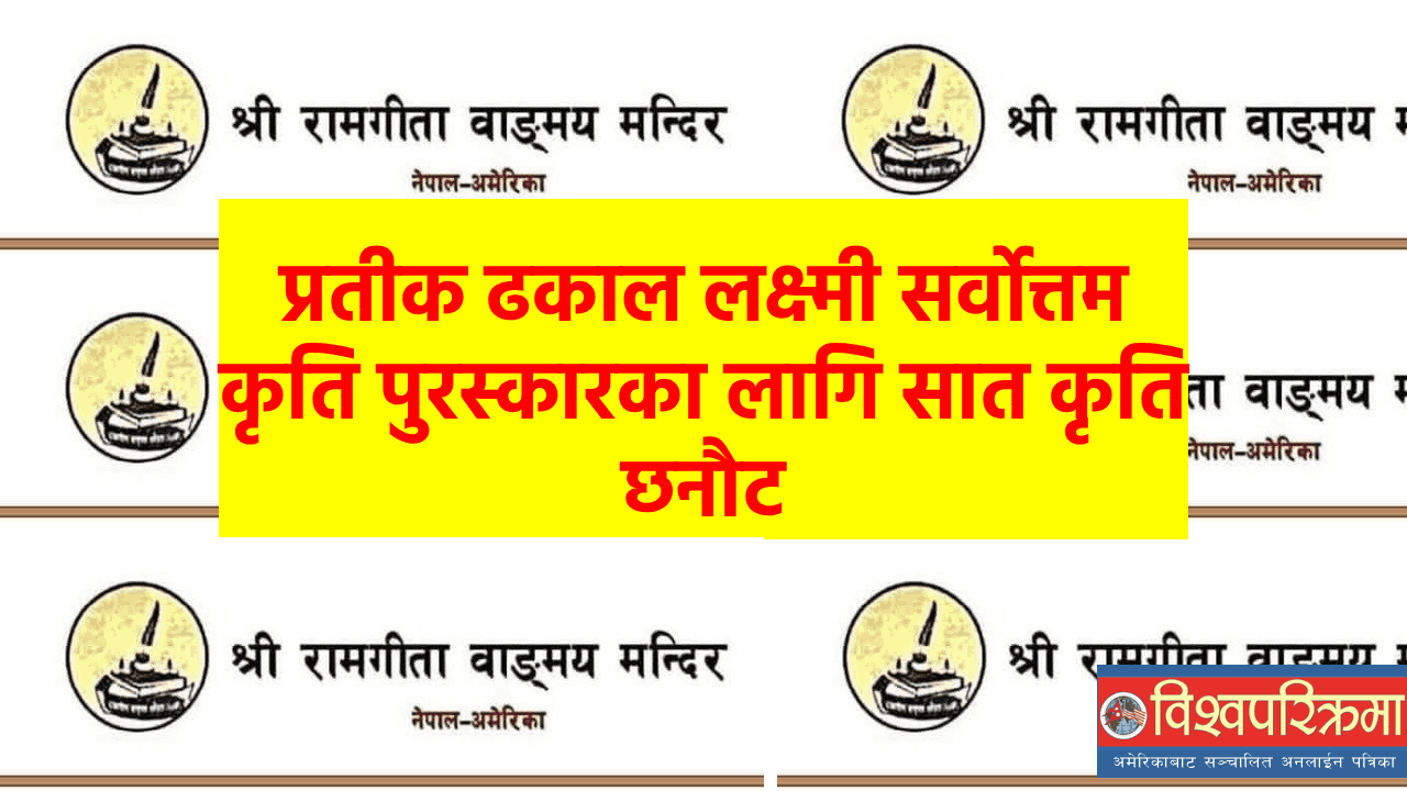 राम गीता मन्दिरका अध्यक्ष गीता खत्री हस्ताक्षरित बिज्ञप्ति अनुसार सो संस्थाले प्रदान गर्ने ‘प्रतीक ढकाल लक्ष्मी सर्वोत्तम कृति पुरस्कार’ का लागि ७ पुस्तकहरूलाई निर्णायक मण्डलको सिफारिसका आधारमा ‘श्रेष्ठ सूची’ अन्तर्गत छनोट गरिएको जनाएको छ ।