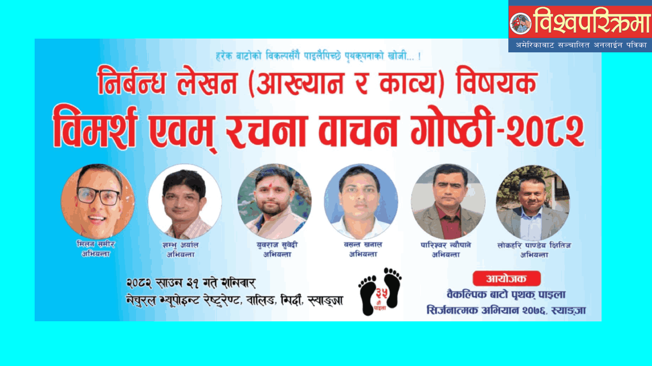 स्याङ्जामा साहित्यिक पुनर्जागरणको छैटौँ वर्षोत्सवको सन्दर्भमा वैकल्पिक बाटो पृथक पाइला सिर्जनात्मक अभियान २०७६, स्याङ्जाको ३५ औँ पाइलाको रूपमा आयोजना गरिएको निर्बन्ध (आख्यान र काव्य) लेखन विषयक विमर्श एवम रचना वाचन गोष्ठी- २०८२ शनिबार सम्पन्न भएको छ ।