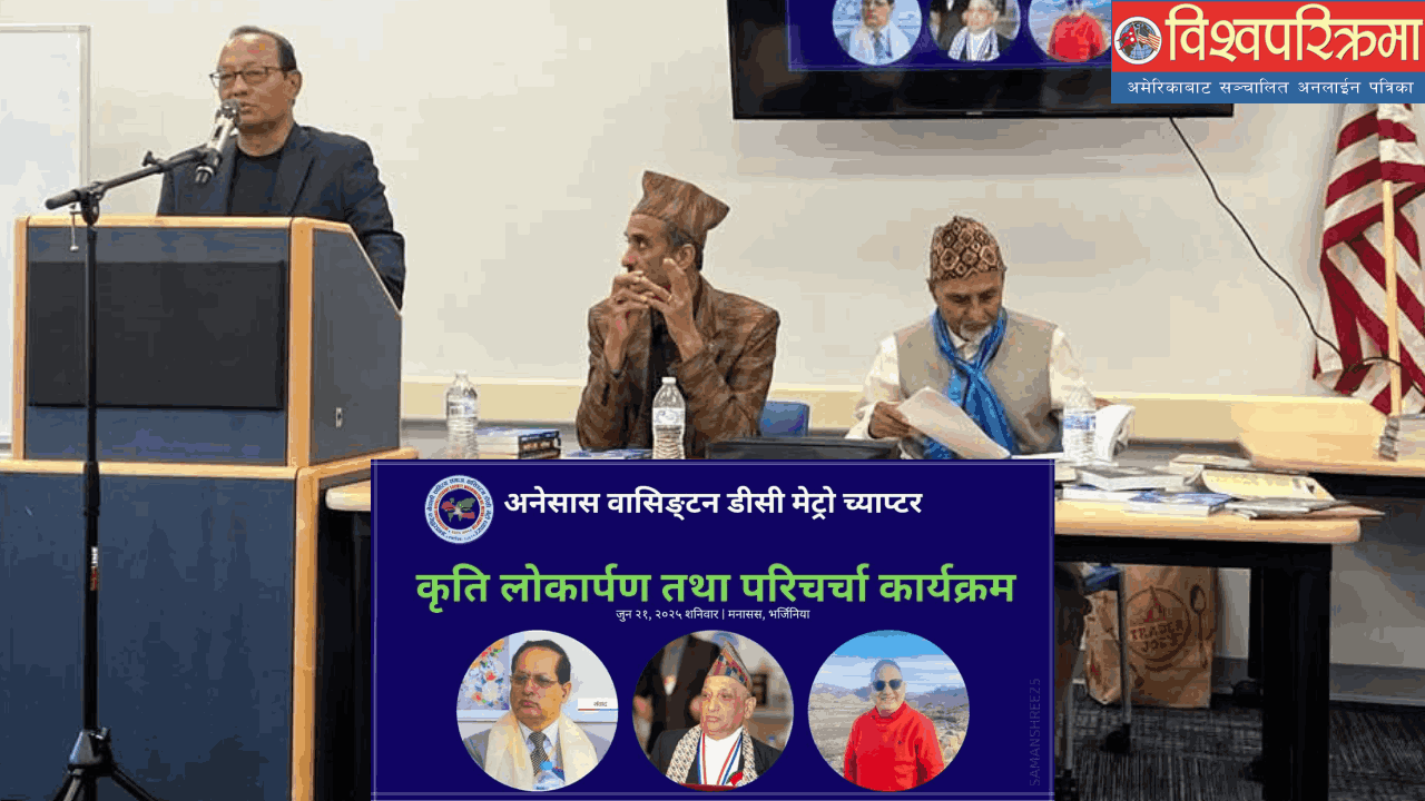 १० असार, २०८२, काठमाडौं । कवि, साहित्यकार तथा प्राकृतिक चिकित्सक मानसाग्नि (डा. हरिप्रसाद पोखरेल)को पहिलो निबन्ध कृति ‘चैतन्यबोध’ एक कार्यक्रमबीच प्रमुख अतिथि प्रा.डा. गोविन्दराज भट्टराई, अतिथिहरू प्रा.डा. कुमारप्रसाद कोइराला, प्रा.डा. हेमचन्द्र नेपाल, प्रा.डा. लक्ष्मणप्रसाद गौतम, निबन्धकार मोमिलालगायतले सामुहिक लोकार्पण गरे । कार्यक्रमलाई सम्बोधन गर्दै प्रमुख अतिथि प्रा.डा. भट्टराईले पूर्वीय दर्शन, वेद वेदाङ्गलाई पठनीय निबन्धका रूपमा […]